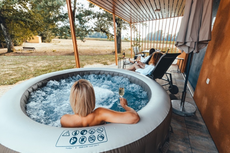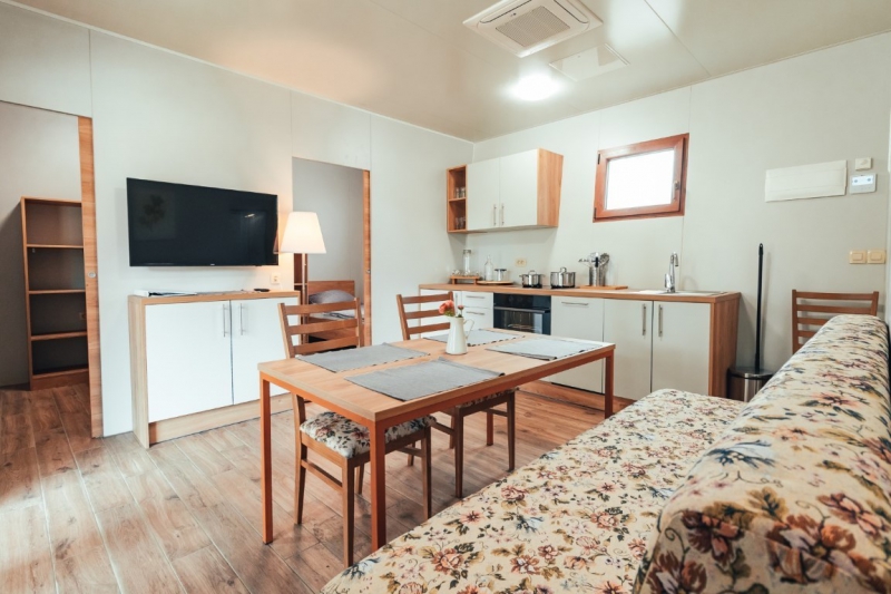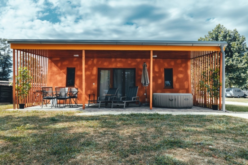 Mobilhome Premium - "textilní" s vlastní vířivkou s termální vodou na terase mobilního domu, vhodné pro pobyty až 5 osob.