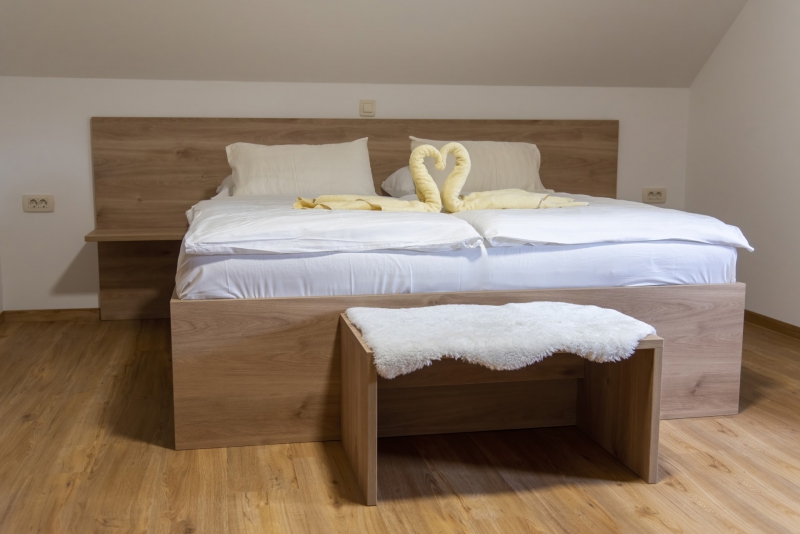 pokoje až pro 3 osoby, dvoulůžkové pokoje v přízemí nebo v patře, s možností přistýlky, vlastním sociální zařízení (sprcha, WC), telefon, Kabel-TV, minibar, fén, župan, balkon nebo terasa