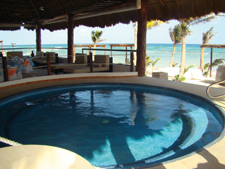 Vyhřívaný bazén s barem, vířivka, lehátka, na pláži k dispozici "Palapas".