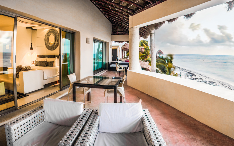 Oceanfront Passion Suites - pokoje s výhledem na moře, postel King-size, s klimatizací, DVD- přehrávač, SAT-TV, telefonem, kávovarem, trezorem, koupelnou, sprcha/WC fénem, balkon nebo terasa, "plážové postele", privátní transfer z letiště, možnost snídaní na pokoji, služby osobního asistenta